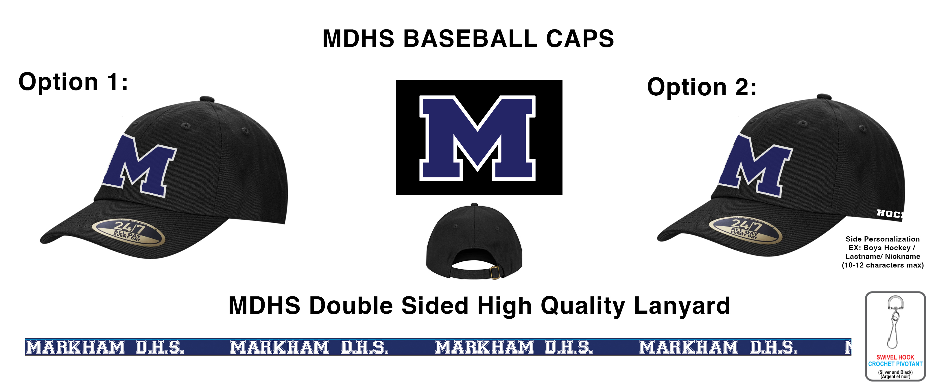 Whether students are heading to class, the field, rink, or out with friends, wear MDHS loud and proud. Grab your MDHS baseball cap and/or lanyard today! Sales end on Thursday, December 11th at 11:59 PM.