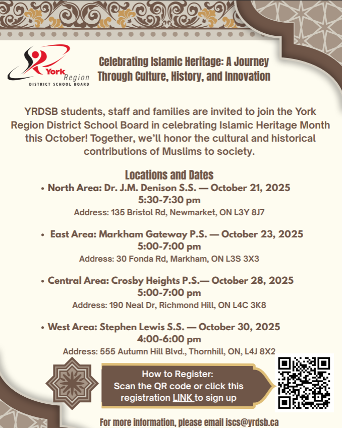 Nov 28: Centennial College Post-Secondary, experiential learning and career exploration field trip (Campus and labour tours, presentation, meet and greet, lunch followed by interactive workshops). Bus will depart at 9:30 am and return at 2:45 pm