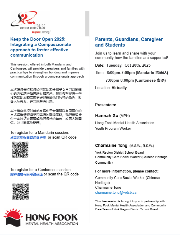 Join us on Tuesday, November 11, 2025 from 6:30 p.m. - 8:30 p.m. with your families online.Please register directly at bit.ly/BFCNWorkshopNovember11. For any questions or concerns, please see the BFCN website for the flyer or email info@bfcn.ca.